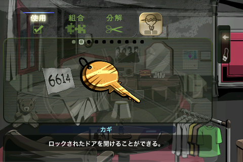 できた「フック」を使って、ベッドの下から「ボタン」を入手。