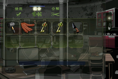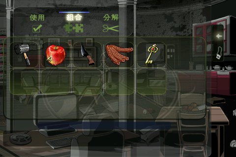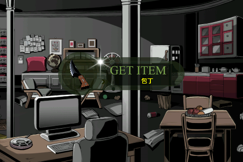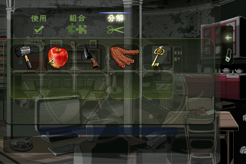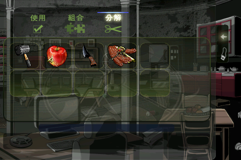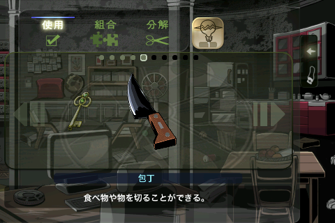 右下のテーブルから「りんご」、キッチンから「包丁」を入手。
