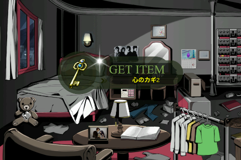 左下のぬいぐるみに「包丁」を使って「心のカギ2」を入手。