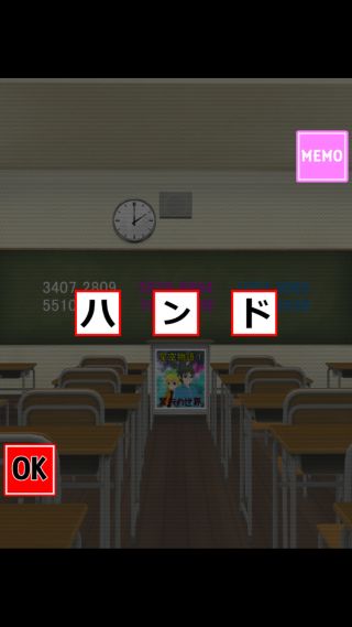 先ほどの赤い数字のヒントから、『ハ』となる。