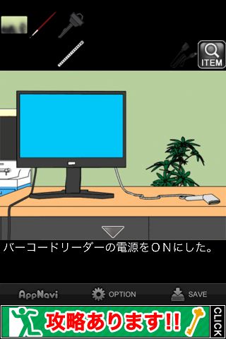 前の部屋に戻り、バーコードリーダーの正面へ。