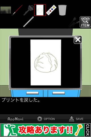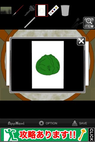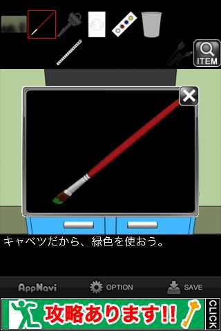 「筆」に緑の絵の具を付けて、「プリント」を出す。