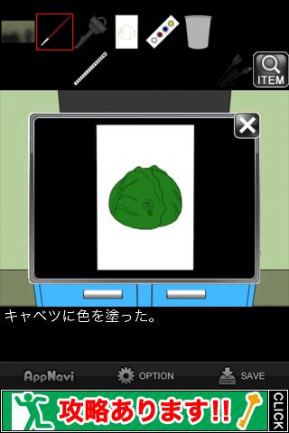 「筆」で緑に塗って、『別の色を~』のメッセージを出す。