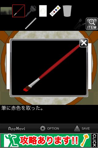 「絵の具」で「筆」に赤い絵の具を付ける。