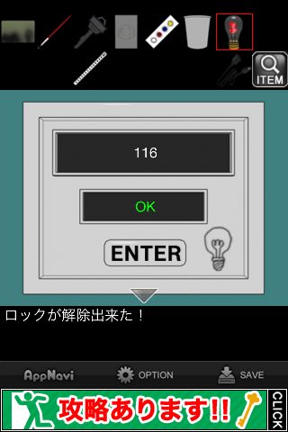 前の部屋に戻り、緑のロッカーへ。