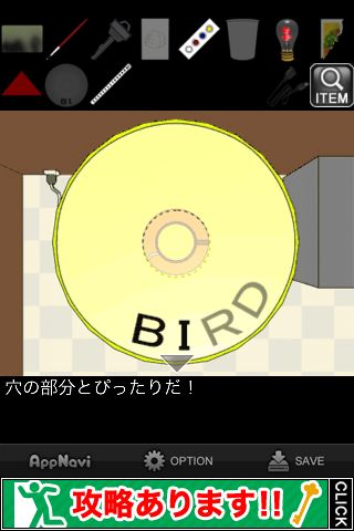 「円形のセロハン」を被せて『BIRD』の文字を確認したら外す。