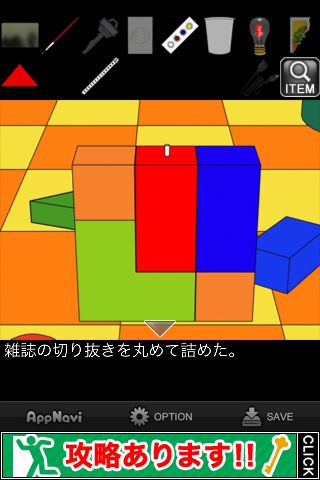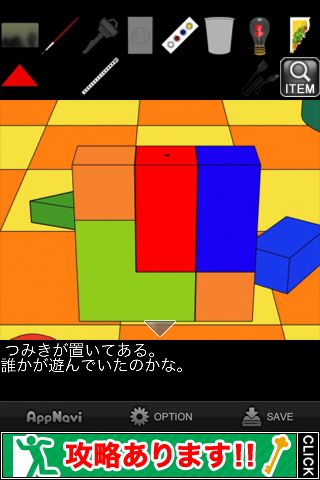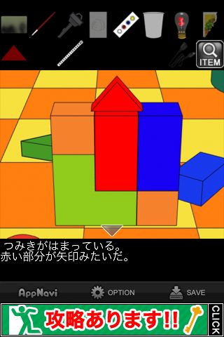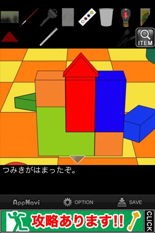 「つみき」をはめて、『赤い部分が矢印みたいだ』のメッセージを出す。