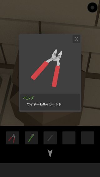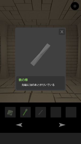 脱出ゲーム 仮面ダンジョンからの脱出 無料 0 評価する 送信する 攻略その2 宝箱の入力装置を拡大。 『IV(4)、V(5)、VII(7)』に合わせて開ける。 「パネル」を入手して、反対側を向く。 左の壁から「鉄の棒」を入手して、最初の部屋に戻る。 右の壁のパズルを回転させて図形を合わせる。 足りない部分に「パネル」をはめて、数字の『7』を確認。 扉が開く。 奥に進んで、右に移動。 左の壺の中から「ペンチ」を入手。 死体の頭から「バンダナ」を入手。 「バンダナ」と「鉄の棒」を組み合わせて、「たいまつ」を入手。 死体の左下にある暗号表を確認。 攻略その1 攻略その2 攻略その3 攻略その4