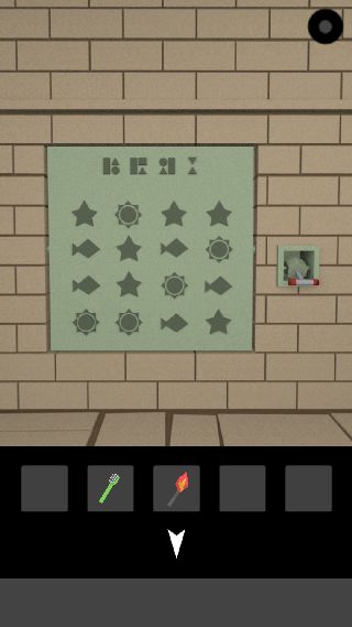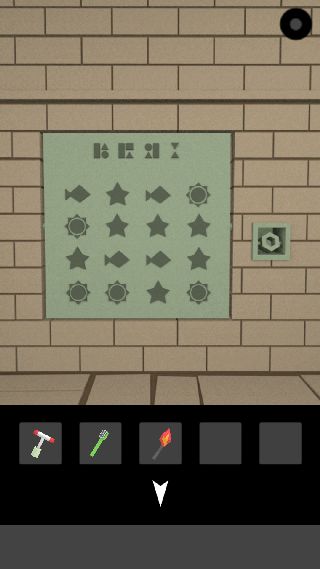 先ほど確認した暗号表から、上の文字は『FISH』となるので、魚の図形の位置を覚えておく。