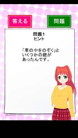 謎解き脱出ゲーム 星空物語3 人気モデルの災難 無料 0 評価する 送信する NAZOKOI おまけ問題ヒント 問題1 「車」という漢字の中にある「中」を除くと・・・。 問題2 『漢字→ひらがな→ローマ字』に変換してみよう。 問題3 『し=カタカナに変換』 『日』 『皿』 『白』 『水』 和室 姉妹の部屋 海 BAR 会議室 池 屋上 犯人の場所 トゥルーエンド おまけ問題ヒント