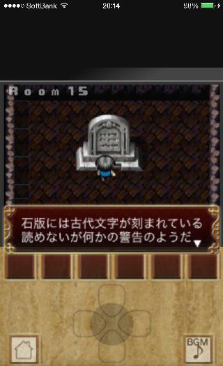 2D脱出ゲーム Rooms Quest -ドット絵の世界へようこそ- 無料 0 評価する 送信する Room 15 上に移動して、石版を調べる。 スイッチを押す。 自動でRoom 10に戻るので、開いた扉から出る。 Room 1 Room 2 Room 3 Room 4 Room 5 Room 6~7 Room 8 Room 9 Room 10 Room 11 Room 12 Room 13 Room 14 Room 15 Room 16~17 Room 18~19 Room 20 Room 21 Room 22 Room 23 Room 24 Room 25 Room 26 Room 27 Room 28 Room 29 Room 30 Room 31 Room 32 Room 33 Room 34 Room 35 Room 36 Room 37 Room 38 Room 39 Room 40 Room 41 Room 42 Room 43 Room 44 Room 45 Room 46 Room 47 Room 48 Room 49 Room 50 その1 Room 50 その2