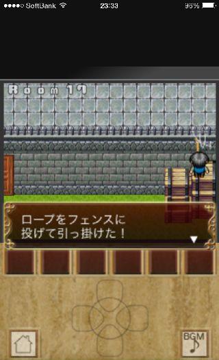 2D脱出ゲーム Rooms Quest -ドット絵の世界へようこそ- 無料 0 評価する 送信する Room 16~17 上に進んでいく。 右上の箱から「ロープ」を入手。 左上の扉から部屋に移動して、箱の右端を調べて「シャベル」を入手。 左下の盛り上がった土を掘る。 「フック」を入手して、調べて「ロープ」を結ぶ。 右上の箱の上に登って、「フック」をフェンスに引っ掛ける。 上に移動して、石像を調べる。 「扉のカギ」を入手して、下に降りて扉を開ける。 Room 1 Room 2 Room 3 Room 4 Room 5 Room 6~7 Room 8 Room 9 Room 10 Room 11 Room 12 Room 13 Room 14 Room 15 Room 16~17 Room 18~19 Room 20 Room 21 Room 22 Room 23 Room 24 Room 25 Room 26 Room 27 Room 28 Room 29 Room 30 Room 31 Room 32 Room 33 Room 34 Room 35 Room 36 Room 37 Room 38 Room 39 Room 40 Room 41 Room 42 Room 43 Room 44 Room 45 Room 46 Room 47 Room 48 Room 49 Room 50 その1 Room 50 その2