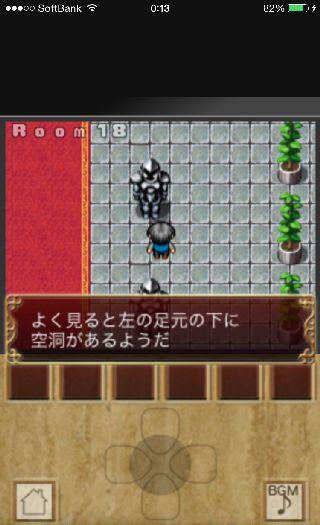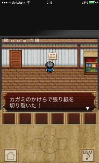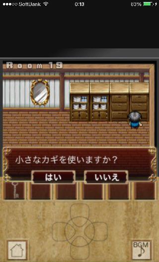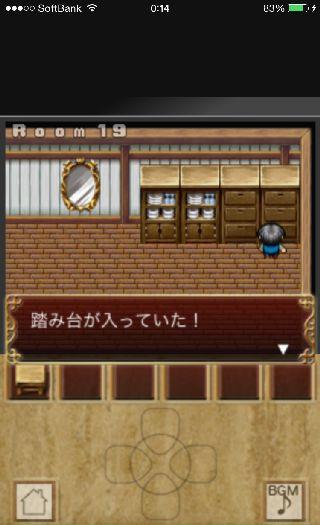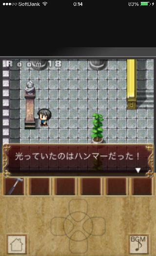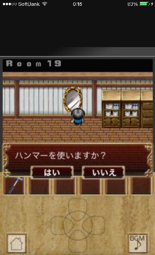 2D脱出ゲーム Rooms Quest -ドット絵の世界へようこそ- 無料 0 評価する 送信する Room 18~19 6体の像の、右上の像の右側を調べる。 「小さなカギ」を入手して、上の扉を進む。 一番右の棚を調べる。 「踏み台」を入手して、Room 18に戻る。 左の石像を調べる。 「ハンマー」を入手してRoom 19に移動。 鏡を割る。 「カガミのかけら」を入手して、上に移動して張り紙を調べる。 「扉のカギ」を入手。 扉を開ける。 Room 1 Room 2 Room 3 Room 4 Room 5 Room 6~7 Room 8 Room 9 Room 10 Room 11 Room 12 Room 13 Room 14 Room 15 Room 16~17 Room 18~19 Room 20 Room 21 Room 22 Room 23 Room 24 Room 25 Room 26 Room 27 Room 28 Room 29 Room 30 Room 31 Room 32 Room 33 Room 34 Room 35 Room 36 Room 37 Room 38 Room 39 Room 40 Room 41 Room 42 Room 43 Room 44 Room 45 Room 46 Room 47 Room 48 Room 49 Room 50 その1 Room 50 その2