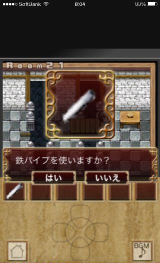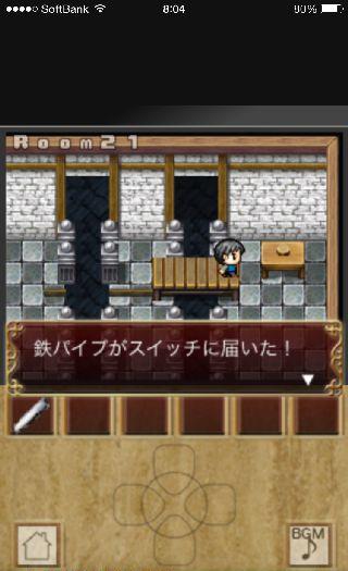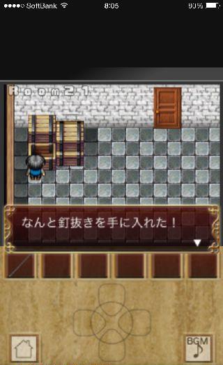 2D脱出ゲーム Rooms Quest -ドット絵の世界へようこそ- 無料 0 評価する 送信する Room 21 左に移動して、箱から「鉄パイプ」を入手。 右上に移動して、スイッチを1回押す。 橋に乗って、右端で「鉄パイプ」を調べる。 乗ったまま橋が動く。 左の箱から「釘抜き」を入手。 右下の色の違う床を調べる。 床板を外して「扉のカギ」を入手。 左上に移動して、扉を開ける。 Room 1 Room 2 Room 3 Room 4 Room 5 Room 6~7 Room 8 Room 9 Room 10 Room 11 Room 12 Room 13 Room 14 Room 15 Room 16~17 Room 18~19 Room 20 Room 21 Room 22 Room 23 Room 24 Room 25 Room 26 Room 27 Room 28 Room 29 Room 30 Room 31 Room 32 Room 33 Room 34 Room 35 Room 36 Room 37 Room 38 Room 39 Room 40 Room 41 Room 42 Room 43 Room 44 Room 45 Room 46 Room 47 Room 48 Room 49 Room 50 その1 Room 50 その2