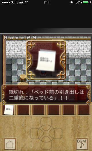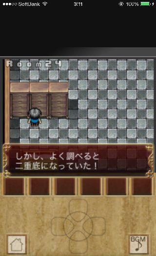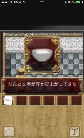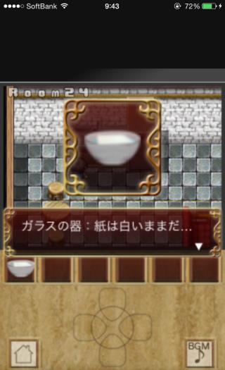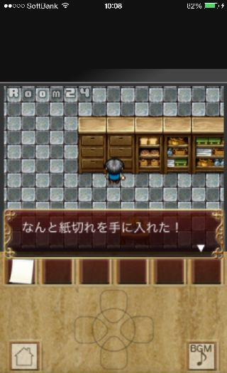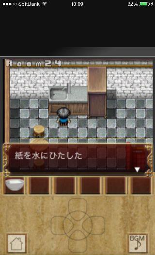 2D脱出ゲーム Rooms Quest -ドット絵の世界へようこそ- 無料 0 評価する 送信する Room 24 左から2番目の棚を調べて、「紙切れ」を入手。 右上の一番左の棚から「ガラスの器」を入手。 左の流し台を調べる。 水を汲む。 「紙切れ」を浸す。 「ガラスの器」を調べて、そのままの状態でしばらく待つ。 「紙切れ」を調べて、左下の中央の棚を調べる。 「扉のカギ」を入手して、右上の扉を開ける。 Room 1 Room 2 Room 3 Room 4 Room 5 Room 6~7 Room 8 Room 9 Room 10 Room 11 Room 12 Room 13 Room 14 Room 15 Room 16~17 Room 18~19 Room 20 Room 21 Room 22 Room 23 Room 24 Room 25 Room 26 Room 27 Room 28 Room 29 Room 30 Room 31 Room 32 Room 33 Room 34 Room 35 Room 36 Room 37 Room 38 Room 39 Room 40 Room 41 Room 42 Room 43 Room 44 Room 45 Room 46 Room 47 Room 48 Room 49 Room 50 その1 Room 50 その2