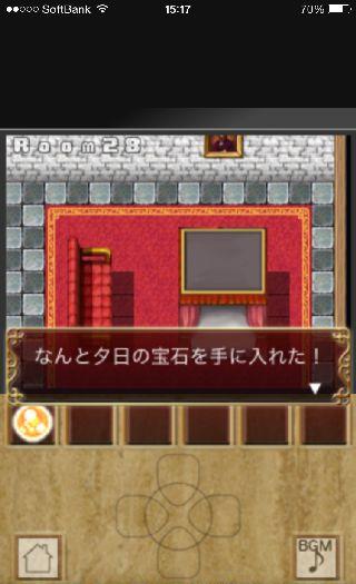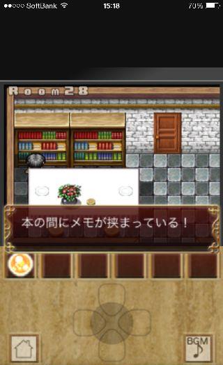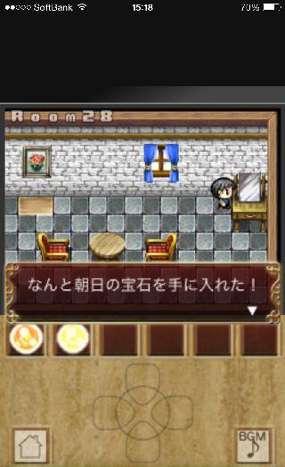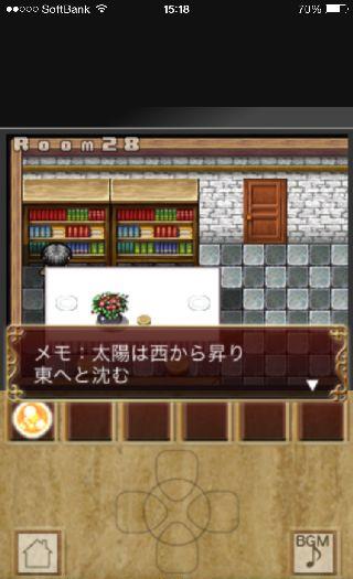 2D脱出ゲーム Rooms Quest -ドット絵の世界へようこそ- 無料 0 評価する 送信する Room 28 右のベッドを上から調べる。 「夕日の宝石」を入手して、左上のテーブルの上の花瓶を調べる。 花瓶をずらす。 本棚の左から2番目で、メモを確認。 右から2番目で、建築についての本を確認。 右奥の鏡の裏から「朝日の宝石」を入手。 窓のカーテンを何度も開け閉めして、「地の宝石」を入手。 左下のスイッチの一番左に「朝日の宝石」を置く。 真ん中に「地の宝石」を置く。 右に「夕日の宝石」を置く。 上に移動して、現れた戸棚から「扉のカギ」を入手。 扉を開ける。 Room 1 Room 2 Room 3 Room 4 Room 5 Room 6~7 Room 8 Room 9 Room 10 Room 11 Room 12 Room 13 Room 14 Room 15 Room 16~17 Room 18~19 Room 20 Room 21 Room 22 Room 23 Room 24 Room 25 Room 26 Room 27 Room 28 Room 29 Room 30 Room 31 Room 32 Room 33 Room 34 Room 35 Room 36 Room 37 Room 38 Room 39 Room 40 Room 41 Room 42 Room 43 Room 44 Room 45 Room 46 Room 47 Room 48 Room 49 Room 50 その1 Room 50 その2