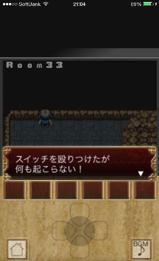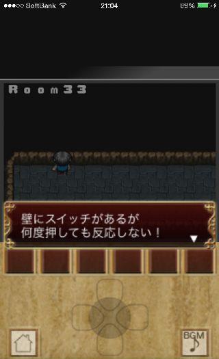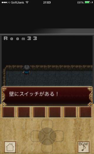2D脱出ゲーム Rooms Quest -ドット絵の世界へようこそ- 無料 0 評価する 送信する Room 33 左上に移動して、左の壁に触れると右から岩が迫ってくる。 上にある壁のスイッチを調べる。 『スイッチを殴りつけたが~』にメッセージが変わったら、何度も調べると奥に通路が現れる。 岩をやり過ごしたら、右に移動してクリア。 Room 1 Room 2 Room 3 Room 4 Room 5 Room 6~7 Room 8 Room 9 Room 10 Room 11 Room 12 Room 13 Room 14 Room 15 Room 16~17 Room 18~19 Room 20 Room 21 Room 22 Room 23 Room 24 Room 25 Room 26 Room 27 Room 28 Room 29 Room 30 Room 31 Room 32 Room 33 Room 34 Room 35 Room 36 Room 37 Room 38 Room 39 Room 40 Room 41 Room 42 Room 43 Room 44 Room 45 Room 46 Room 47 Room 48 Room 49 Room 50 その1 Room 50 その2