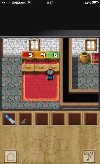 2D脱出ゲーム Rooms Quest -ドット絵の世界へようこそ- 無料 0 評価する 送信する Room 38 左に移動して、棚から「接着剤」を入手。 右上に移動して、宝箱から「折れたカギ」を入手。 3つのスイッチの前に移動。 『赤=椅子の数=5』、『オレンジ=壺の数=4』、『緑=植木の数=6』に合わせる。 植木はベランダの外にある草も計算する。 部屋の扉が開くので、中の宝箱から「折れたカギ」を入手。 「接着剤」を使って、「扉のカギ」を入手。 扉を開ける。 Room 1 Room 2 Room 3 Room 4 Room 5 Room 6~7 Room 8 Room 9 Room 10 Room 11 Room 12 Room 13 Room 14 Room 15 Room 16~17 Room 18~19 Room 20 Room 21 Room 22 Room 23 Room 24 Room 25 Room 26 Room 27 Room 28 Room 29 Room 30 Room 31 Room 32 Room 33 Room 34 Room 35 Room 36 Room 37 Room 38 Room 39 Room 40 Room 41 Room 42 Room 43 Room 44 Room 45 Room 46 Room 47 Room 48 Room 49 Room 50 その1 Room 50 その2