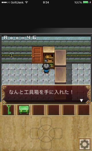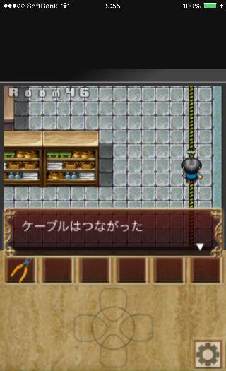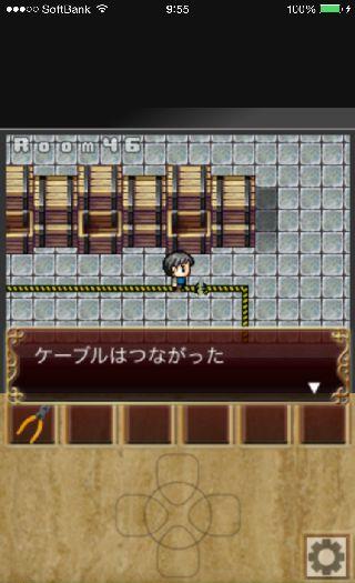 2D脱出ゲーム Rooms Quest -ドット絵の世界へようこそ- 無料 0 評価する 送信する Room 46 一番右の箱の中から「工具箱のカギ」を入手。 上の棚から「工具箱」を入手。 「工具箱」を「工具箱のカギ」で開けて、「ペンチ」を入手。 「ペンチ」でケーブルを繋げる。 下に移動して、「ペンチ」でケーブルを繋げる。 右下に移動して、「ペンチ」でケーブルを繋げる。 右上に移動して、「ペンチ」でケーブルを繋げる。 右上のスイッチを押す。 扉が開く。 Room 1 Room 2 Room 3 Room 4 Room 5 Room 6~7 Room 8 Room 9 Room 10 Room 11 Room 12 Room 13 Room 14 Room 15 Room 16~17 Room 18~19 Room 20 Room 21 Room 22 Room 23 Room 24 Room 25 Room 26 Room 27 Room 28 Room 29 Room 30 Room 31 Room 32 Room 33 Room 34 Room 35 Room 36 Room 37 Room 38 Room 39 Room 40 Room 41 Room 42 Room 43 Room 44 Room 45 Room 46 Room 47 Room 48 Room 49 Room 50 その1 Room 50 その2