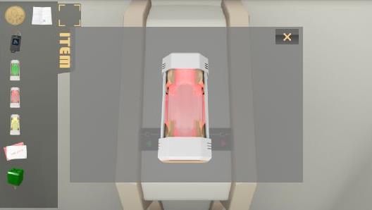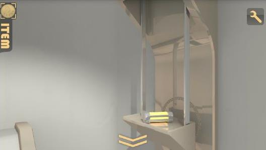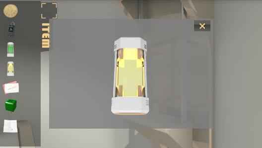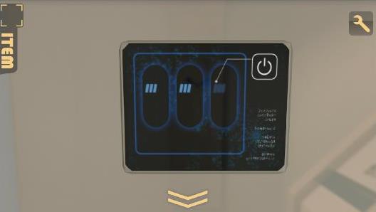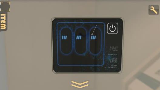 左の壁のパネルを拡大して、右上のボタンを押す。