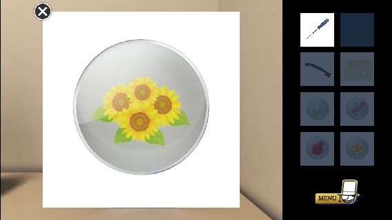 一番右の花瓶に「ドライバー」を使って、「ひまわりのメダル」を入手。