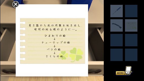 上の引き出しを「カギ」で開けて、「メモ」を入手。