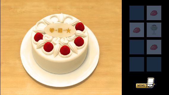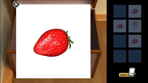 「イチゴ」を入手して、テーブルの上のケーキを拡大。