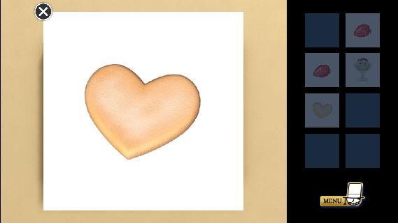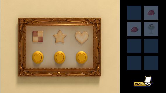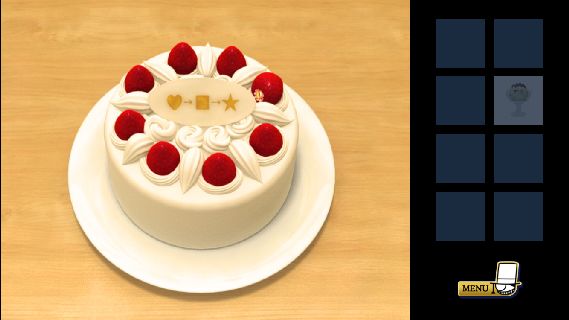 テーブルの上のケーキに書かれている『ハート→■→★』を確認して、壁の額を拡大。