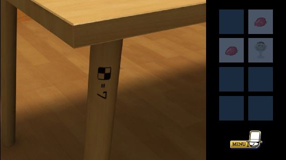 テーブルの脚と正面の壁の棚の下から、2つの図形の数字を確認。