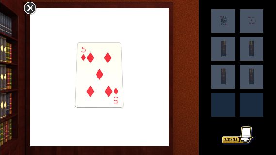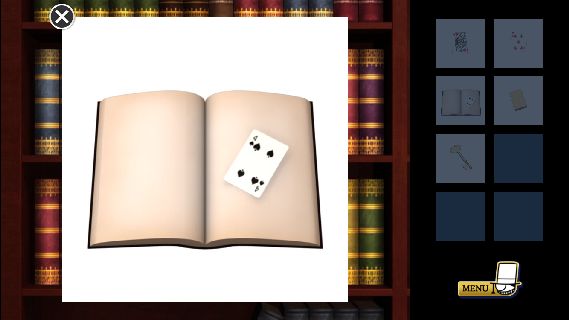 中央左から「トランプ」を入手して、右の本棚の前へ。