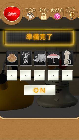 変換したカタカナを組み合わせて、『カイ(貝)、ウシ(牛)、サイ(犀)、カサ(傘)、イカ(烏賊)』に合わせる。
