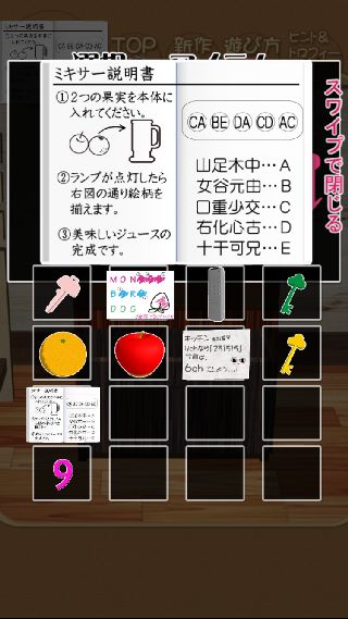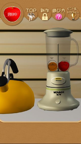 右のミキサーに「オレンジ」と「リンゴ」を入れる。
