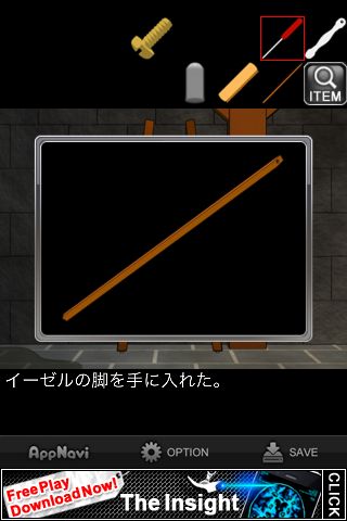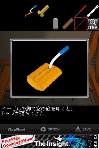 右上の棚に「イーゼルの脚」を使って「モップ」を入手。