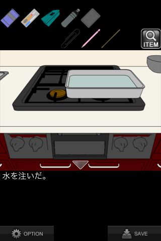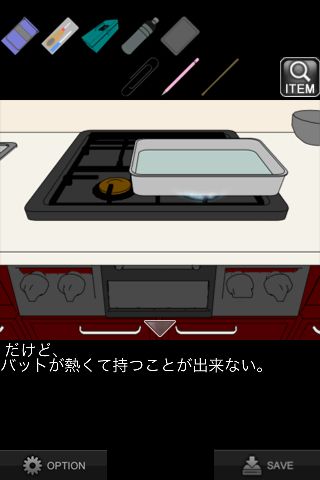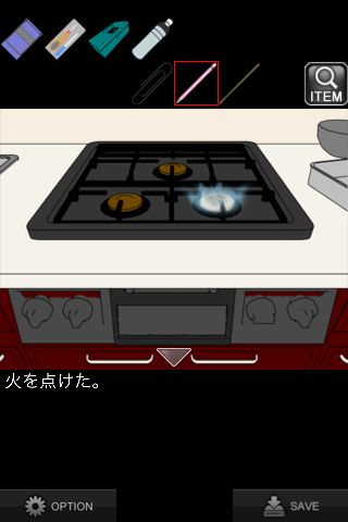 火を付けて部屋を1周して戻ると沸いている。『熱くて持つことが出来ない』のメッセージを出す。