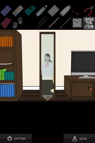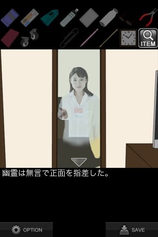 鏡に映っている幽霊を調べて、指さすのを確認。