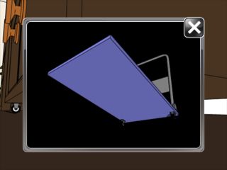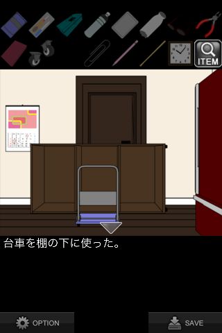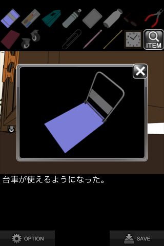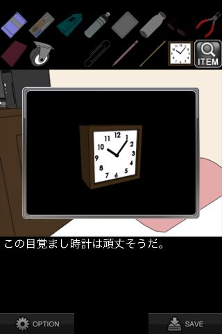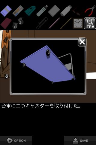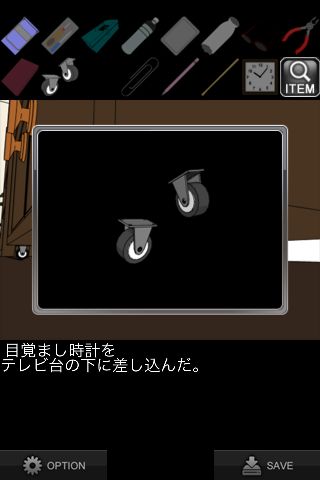 テレビ台に戻り、「目覚まし時計」を使って「キャスター」を入手。
