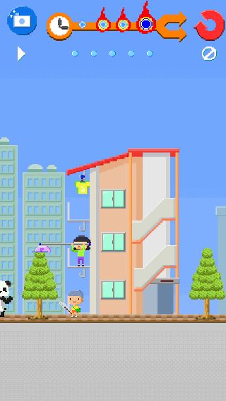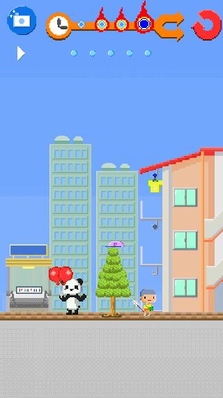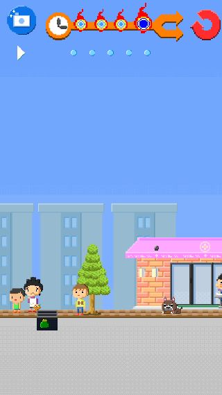 木を揺らして出てきた虫をタップして、すぐに少年をタップする。