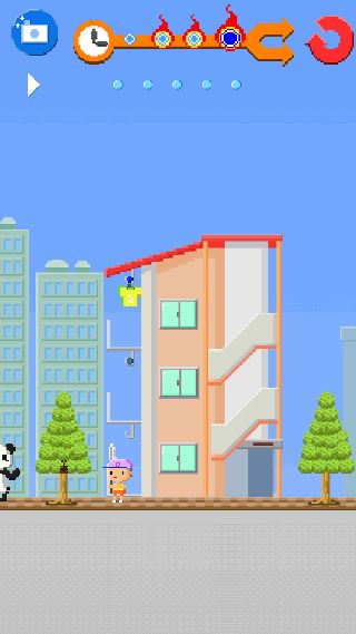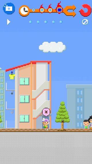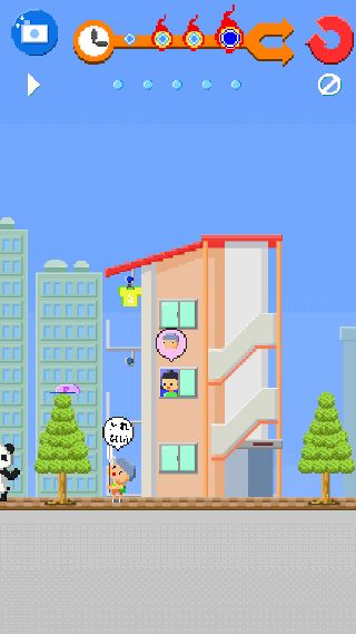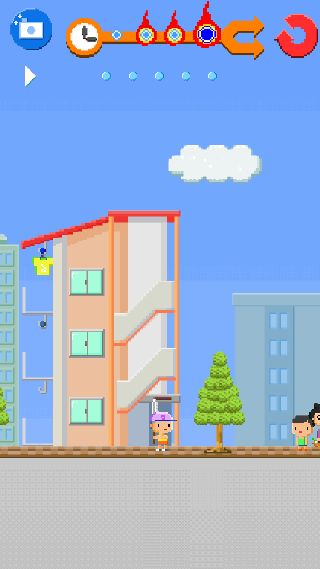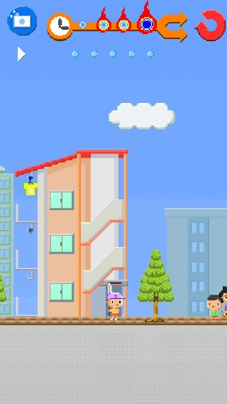 建物の2階の窓を開けて出てきた住人をタップすると、困っている少年に気づく。