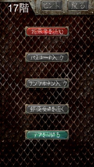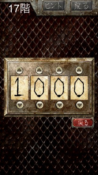 償いの塔 無料脱出ゲーム 無料 0 評価する 送信する natukumo 17階 紫閃の騎士 指示書を確認。 『千の喝采』からパスコード入力で、『1000』に合わせる。 『紫閃』から、『紫=青+赤』を導き出す。 ランプボタン入力で、『青赤』を押す。 『安らぎを』から郵便受けを覗くで、目が出現していない状態にする。 1階 命の価値は 2階 赤いガソリン 3階 障子にメアリー 4階 無邪気の邪 5階 監視の目をかいくぐり 6階 何人捕まえた 7階 アハハハハ 8階 嘘つきを殺せ 9階 罪の代償 10階 カラーとナンバー 11階 審判の騎士 12階 愛の女神 13階 粛清の執行人 14階 首狩り族 15階 絶対の王 16階 時空の騎士 17階 紫閃の騎士 18階 骸骨の王 19階 性欲と抑制 20階 罪深き者達