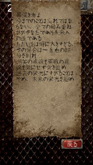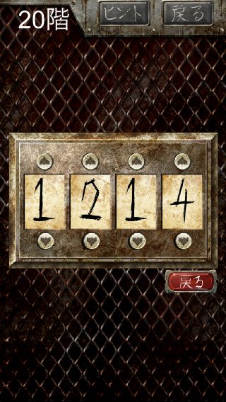 償いの塔 無料脱出ゲーム 無料 0 評価する 送信する natukumo 20階 罪深き者達 指示書を確認。 1階から19階までに「パスコード入力」を使用した階の答えを全て足すと『12149』になる。 指示書のとおりに一番右の数字を削る。 パスコード入力で、『1214』に合わせる。 1階 命の価値は 2階 赤いガソリン 3階 障子にメアリー 4階 無邪気の邪 5階 監視の目をかいくぐり 6階 何人捕まえた 7階 アハハハハ 8階 嘘つきを殺せ 9階 罪の代償 10階 カラーとナンバー 11階 審判の騎士 12階 愛の女神 13階 粛清の執行人 14階 首狩り族 15階 絶対の王 16階 時空の騎士 17階 紫閃の騎士 18階 骸骨の王 19階 性欲と抑制 20階 罪深き者達