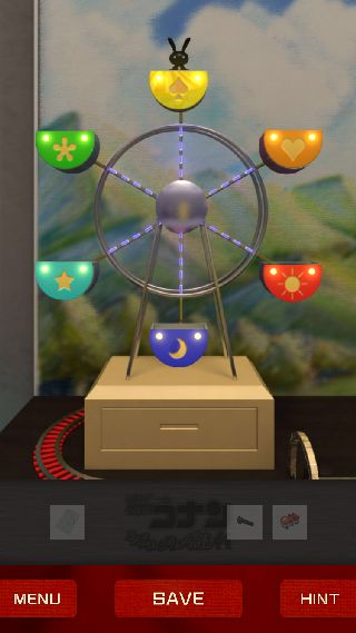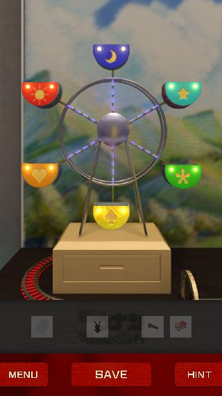 先ほどの額をヒントに、下に「人形」を乗せて観覧車を1周させる。