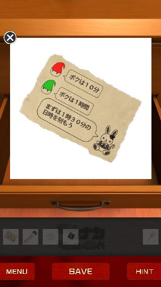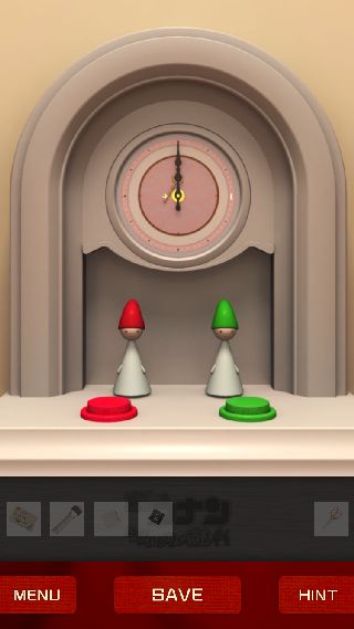 時計を拡大して、「メモ」をヒントに『赤3回、緑1回』押す。
