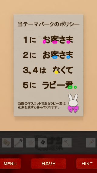 右下のハッチのボタンを『1:赤3、2:青2、3:黄1、4:緑2』の順で押す。