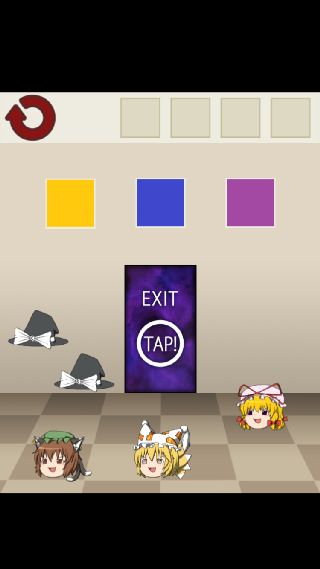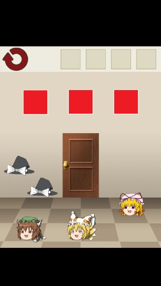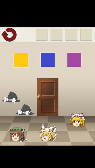 ゆっくり棒読み脱出ゲームdoors 無料 4.5 評価する 送信する 八幡洋一 30. 漢字で書くと橙藍 帽子を動かすと、隠れているキャラクターを確認できる。 このステージはキャラクターの知識が必要と思われる。 タイトルもヒントになっている。 『橙藍紫』に合わせて、扉をタップする。 1. ゆっくり開けていってね 2. N家のふすま 3. 出たくて出たくて震える 4. 呼吸を止めて○秒 5. まりさだぜ! 6. スーパーまりさ 7. 汚物はゴシゴシだァァー 8. ここなんだぜ ⑨きみはじつにばかだな 10. ⑨には見えない扉 11. 物理で殴る 12. ちょっと横になるわ 13. アタイも横になるわ 14. 隠したのぜ(ドヤァ 15. ブラじゃないよ 16. 直線的な門番 17. おやつのじかん 18. 名付けてそすう 19. ゆっくりに体重を聞くなんて 20. ちゅうかな門番 21. ここにヒモがあるじゃろ? 22. おぼえてろー! 23. メイドのナイフ 24. でかい(確信 25. カッパの子 26. スイーツ(笑) 27. いねむり門番 28. 何も隠してないんだからね! 29. 世界一かわいいババァ 30. 漢字で書くと橙藍 31. 白黒つけたい三姉妹 32. はやいこだれだ 33. せ~のっ! 34. お嬢様に体重を聞くなんて 35. 唯我独尊 36. そんなことより人参たべたい 37. にんぎょうつかい 38. 耳じゃなくて 39. さいきん丸くなった三姉妹 40. 月の実家にかえるわ 41. おおいこだれだ 42. 残念なおねえちゃん 43. 器が小さい三姉妹 44. カメラ(物理) 45. 立場をわきまえろ 46. 愛されすぎて 47. アタイがんばってとぶよ 48. 一大事~! 49. 鬼畜ナンバーズ 50. ノーヒントでゆっくり