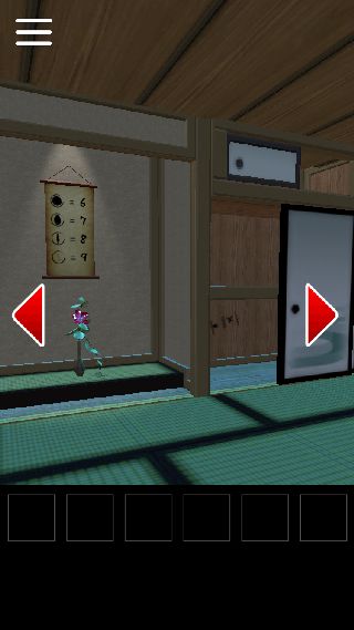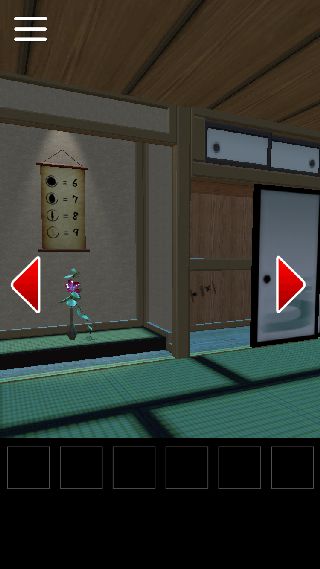 テーブルのある部屋から最初の部屋の方を向いて、右の襖を閉める。