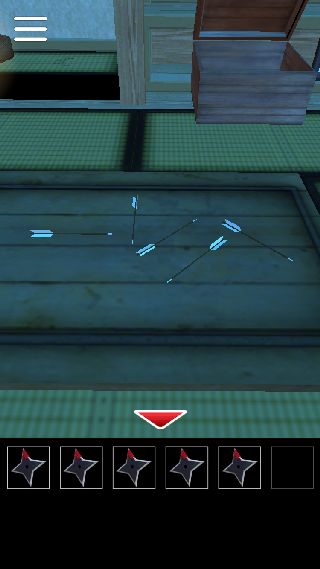 テーブルのある部屋の、テーブルの上の5本の矢を確認。