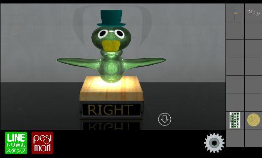 右に移動して、棚の上の鳥の置物の『RIGHT』を確認。