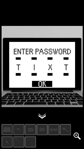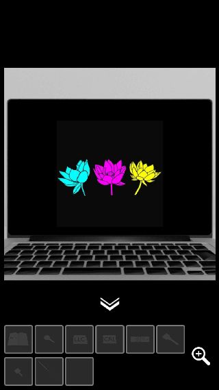 脱出ゲーム Lotus 無料 0 評価する 送信する 攻略その3 左に移動して、扉を拡大。 鏡の上のネジを「ドライバー」で外す。 現れた暗号は、それぞれ右側に鏡に写したようにくっつけると『TIXT』となる。 右に移動して、パソコンを拡大。 『TIXT』に合わせて『OK』を押すと、反対側の壁が開く。 反対側に移動して、再びパソコンを拡大。 右上の×ボタンを押して、花の色を確認。 反対側に移動。 ボタンの色を『水色、紫、黄色』に合わせて、下のボタンを押す。 中から「カギ」を入手。 左に移動して、「カギ」で扉を開ける。 攻略その1 攻略その2 攻略その3