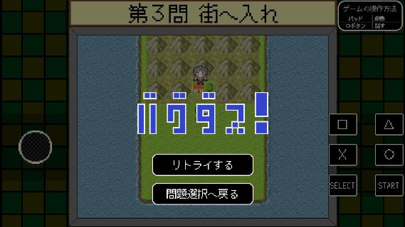 バグダス - デバッガー検定 - 無料 5.0 評価する 送信する Jiruo Software 第3問 街へ入れ 左下に海に入れるポイントがある。 そのまま海から山に入って、街へ。 第1問 間違いを見つけろ 第2問 フリーズさせろ・1 第3問 街へ入れ 第4問 バグを見つけろ・1 第5問 フリーズさせろ・2 第6問 ゴールへ辿り着け 第7問 進行不能にしろ 第8問 バグを見つけろ・2