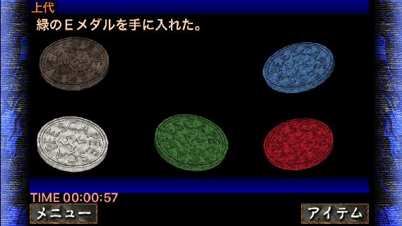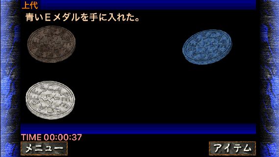 棚の左下の箱を持ち上げて、「青いEメダル」を入手。